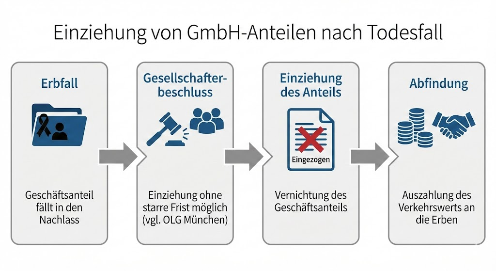 Im vorliegenden Verfahren ging es um eine GmbH-Satzung, die eine klassische Regelung für den Todesfall enthielt: Verstirbt ein Gesellschafter, so sind die übrigen Gesellschafter berechtigt, dessen Geschäftsanteil durch Beschluss einzuziehen. Ziel einer solchen Regelung ist es meist, den „geschlossenen Kreis“ der Gesellschafter zu wahren und eine Überfremdung durch Erbengemeinschaften zu verhindern.